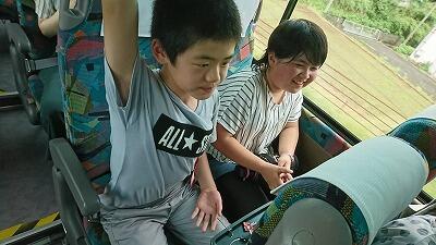 子どもたちは、まだまだ元気いっぱい! バスの中でゲームを楽しんでいます。