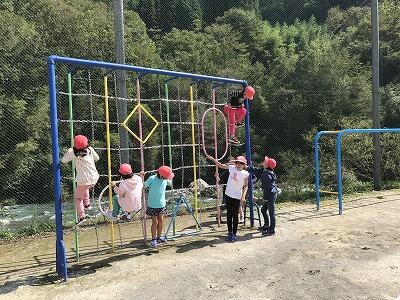 運動場には、古くなっていた遊具が撤去され、9月に新しい遊具を村教委に設置していただきました。ありがとうございました。