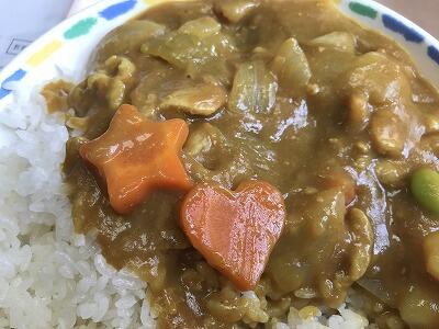 チキンカレーには大きめの具が入っていました。それは、ハートや星を型取ったニンジンでした。ちょっとした工夫で、味はもちろん、見た目も美味しくなり、幸せな気分になれました。