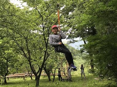 梅ちぎりの後は、ツリーハウスの森を創られた、尾前一日出さんに、ジップラインや、ツリーハウスに登ったり等の体験をさせていただきました(^^)