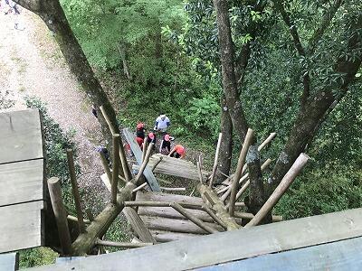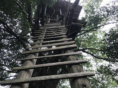 【高さ13mのツリーハウス! 階段は、ほぼ90°】↓
