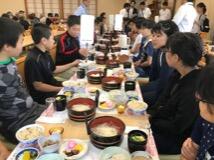 【作っていただいた調理員さんに心を込めて、「いただきます」の合掌!】↓