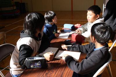 最後に、「リフレーミング」について学びました。リフレーミングとは、ものごとを違う視点でとらえなおすことです。自分では欠点だと思っていることも、違う視点からみると長所になるかもしれません。子どもたちは事前に「自分のよいところ」「なおしたいところ」のアンケートに答えていました。今回は、「なおしたいところ」を親子で確認し、どのように「よさ」につなげるかを話し合いました。各家庭で熱心な話し合いがなされ、たとえば「みんなに強い口調で話してしまう」というのを「リーダーシップがある」と捉え直したり、「作業が遅い」を「丁寧」と捉え直すなど、プラスに考えようとするあたたかい雰囲気が感じられました。