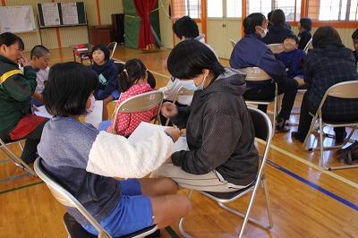 はじめに、保護者からのメッセージを担任が代読しました。我が子への心温まるメッセージに胸を打たれました。次に友達からのメッセージ、本人の話と続きました。