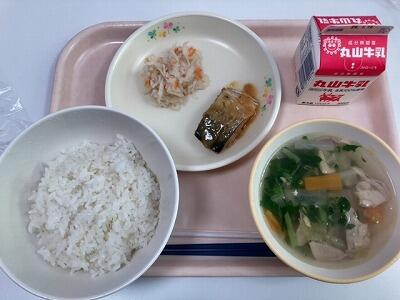 (献立は、七草雑炊・さばゆずみそ煮・紅白なますでした。)