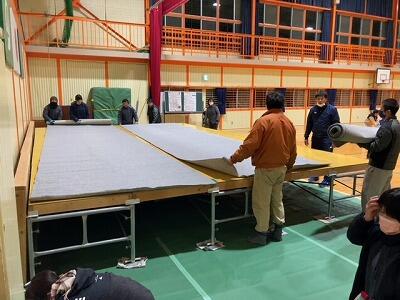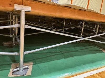 1月11日(木)の午後6時から、体育館のステージ作りをしました。2月4日に予定している学習発表会や3月25日の卒業式で使うステージです。