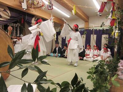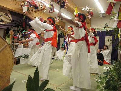 尾向では、4地区で冬祭典が開催されます。追手納地区では、小学生3名と中学生が神楽を舞いました。地域の方々の温かな眼差しのもと、披露することができました。練習期間は短かったと思いますが、1年生もしっかり舞うことができました。