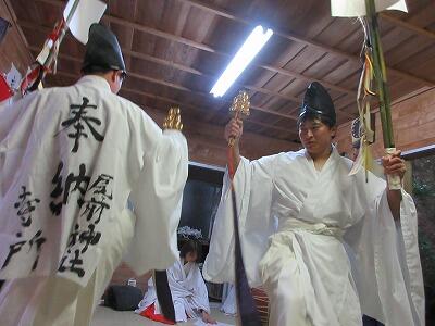 子ども神楽は、小学生2組、中学生1組が舞いました。小学生の舞には、保育所生も一緒に入りましたが、とても上手に舞っていました。中学生の舞は、さすがに力強かったです。みんな、たくさんの声援を受けて、堂々と披露していました。