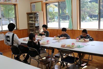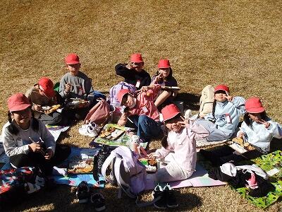 他にも、外国語の時間に学んだ英語を使って交流遊びを楽しみ、コミュニケーション能力を磨きました。活動後は、外の広場をお借りして、みんなで楽しくお弁当を食べました。