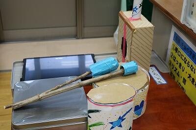 この日のために低学年の子どもたちが一生懸命作った、温かい手作りおもちゃがたくさん並びました。