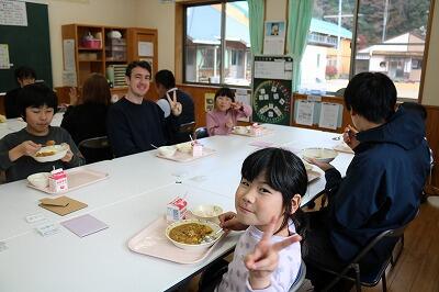 午前中の授業では、子どもたちはアーロン先生との英語での交流を大いに楽しみました。さらに、今日はいつも以上に長く一緒に過ごすことができ、みんなで楽しく給食を食べ、昼休みも大好きなドッジボールなどで一緒に遊びました。