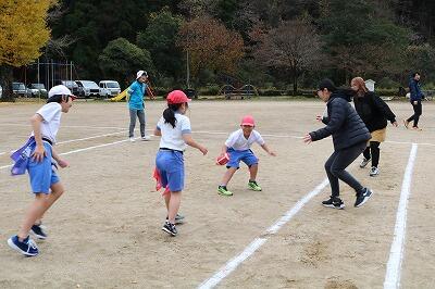 持久走の後は、フラッグフットボール型のゲームに保護者のみなさんに参加してもらいました。