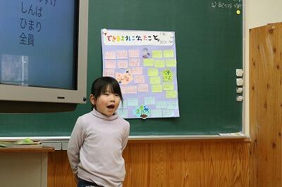 まずは、1年生。「できるようになったこと」を発表しました。その表情は、照れくさそうでもありましたが、誇らしげでもありました。