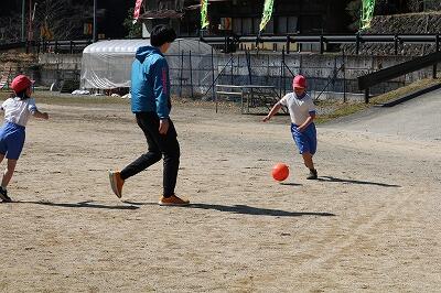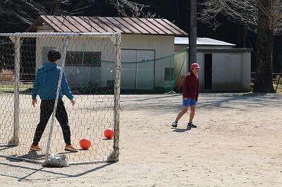 そんなに広いわけでもない運動場ですが、4人で使うには広すぎますね。運動場の端までボールが転々とするのを追いかけます。