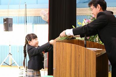 それから、教科書を校長先生から受け取ります。何カ所にもお辞儀をして、とても上手に受け取ることができました。