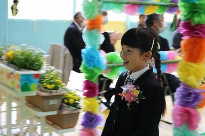 緊張の様子も見られた式前の様子でしたが、退場の時はとびきりの笑顔で、式に参加された地域の方々とハイタッチしながらの退場となりました。