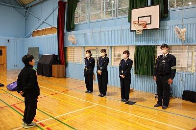 今回はあいにくの雨天となったため、体育館でDVD視聴と横断歩道の実地指導を行いました。