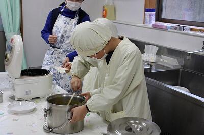 交流活動の後は、みんなで一緒に「ふれあい給食」の時間です。
