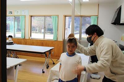 身体計測です。子どもたちは結構好きらしく、自分がどれくらい大きくなったか、数字を見て確かめています。