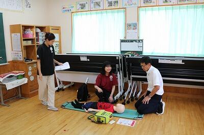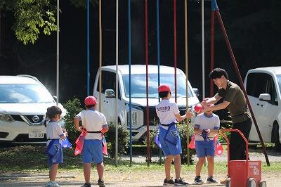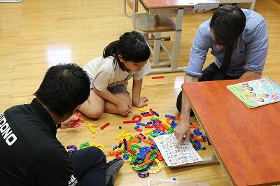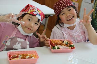 他にも、外国語の時間に学んだ英語を使って交流遊びを楽しみ、コミュニケーション能力を磨きました。活動後は、外の広場をお借りして、みんなで楽しくお弁当を食べました。