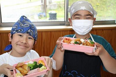 ずらりとおかずが並びました。自分たちで、好みのおかずをつめていきます。それはそれはとても豪勢なお弁当になりました。