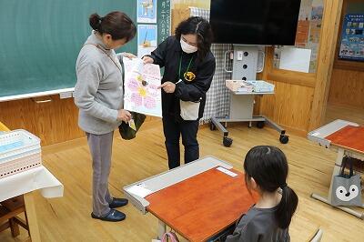 普段は先生や友達と食べる給食ですが、この日は地域の方々や保護者の方々と食卓を囲み、いつもとは違う楽しい雰囲気の中で食事をしました。温かい会話が弾み、子どもたちにとっても思い出深い給食となりました。