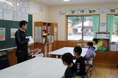 算数の複式授業:不土野小学校ならではの複式授業も体験。少人数ならではのきめ細やかな学習環境を体験してもらいました。