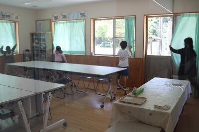校内かくれんぼでは子どもたちが隠れ、お家の人が見つけ出す形で行いました。