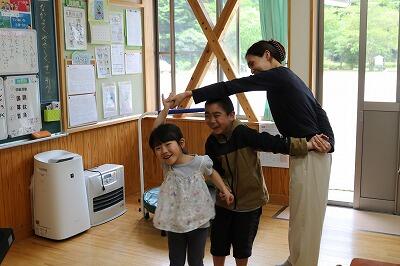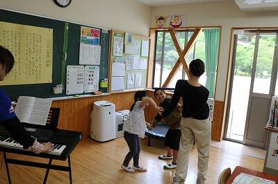 保護者の方々もお越しになりました。子どもたちと一緒に親子レクリエーションで楽しく過ごします。