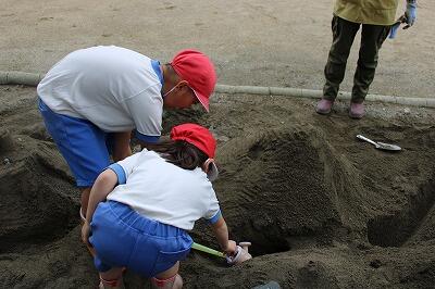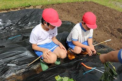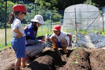 5月にみんなで植えたサツマイモの苗が、立派に育ち、先日、いよいよサツマイモ掘りをしました。
