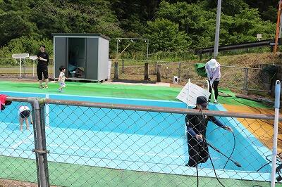 4人で掃除に取り組んでいます。教室が少ないとは言え、トイレなども含めると相当大変です。