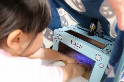 お帰りの際には、手作りのガチャマシーンから出てきたカプセルの番号を見て、お土産を持ち帰っていただきました。中身は、子どもたちが作った、オリジナルプラバンキーホルダーです。