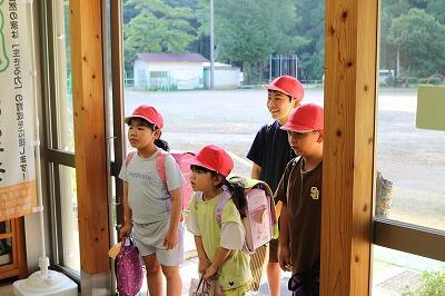 不土野小の子どもたちは、新しい友達との出会いに朝から大喜び。転入生を迎えるような温かい雰囲気で一日を過ごしました。