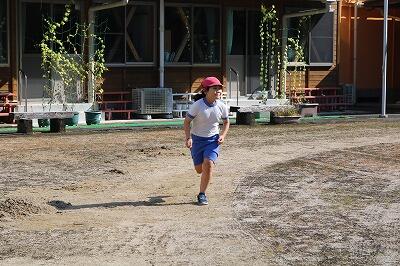 子どもたちにとっては、平らな運動場を走るよりもやはりきつさを感じたようですが、その一方で、走っているときの風景が変わったり、下り坂があったりすると、自然とペースが上がってくるのを感じられたようです。
