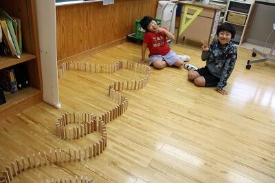 子どもたちは、このドミノを11月5日(水)のふれあい参観日で、地域のご高齢の皆様方と一緒に活動できるのではと考えています。