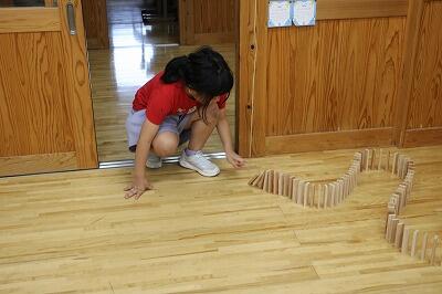 「心を一つに」という言葉がぴったりのとてもあたたかい時間となりました。途中、意図せず倒してしまったり、うまくいかなかったりする場面もありましたが、前向きな声を掛けないながらなんとか並べきることができました。全部倒しきったあとは、自然に大きな拍手と歓声が沸き起こりました。