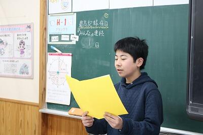 かけ算の練習を例に挙げ、難しいことでも投げ出さずに取り組む大切さを発表しました。また、日頃の言葉遣いについても意識を高めたいと、自分を律する素晴らしい目標を立てていました。