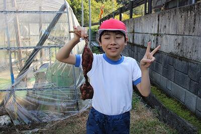 味の感想を聞こうと思ったら、なぜか持ち帰ったキュウリを再び学校に持ってきてくれたようで、まだ食べてないそうです。