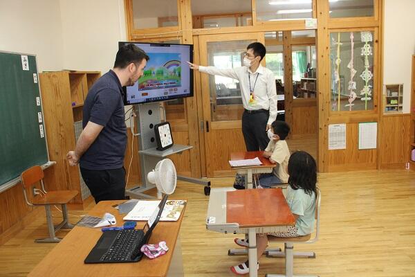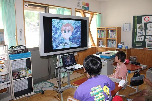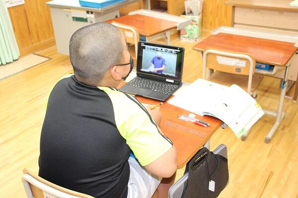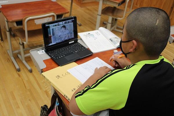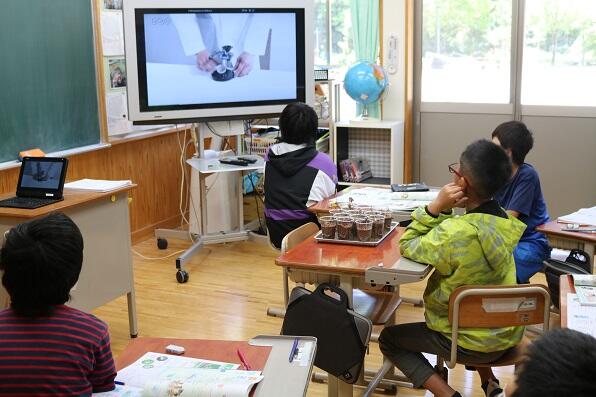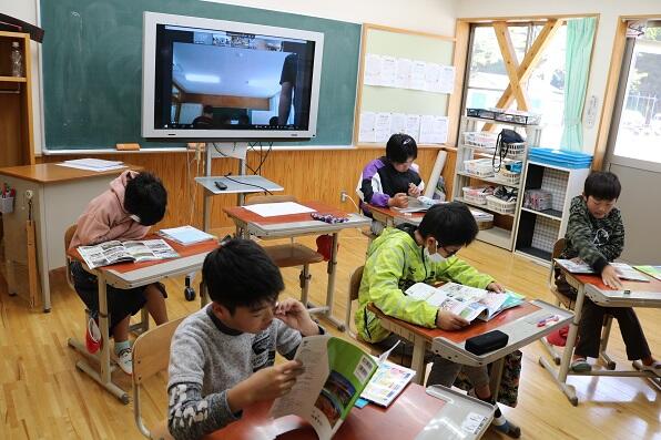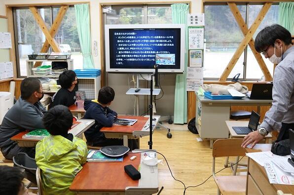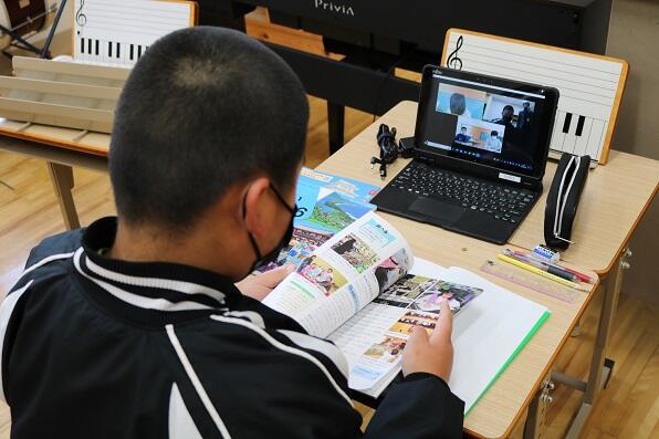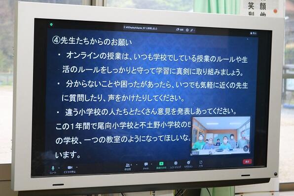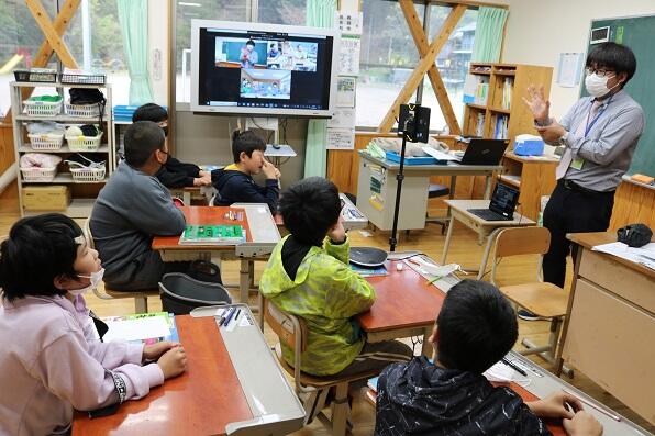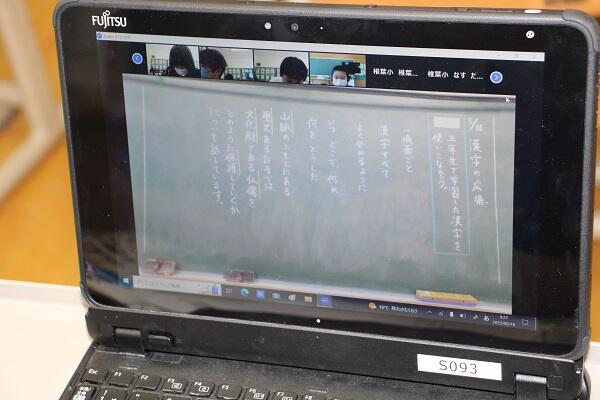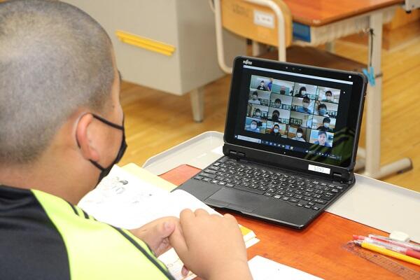 5年生は尾向小とのオンライン授業で、日本の国土について学習していました。