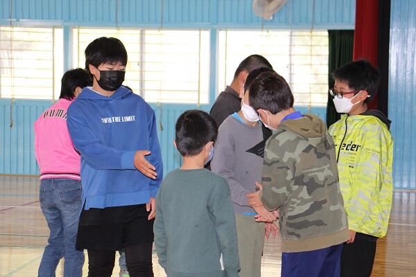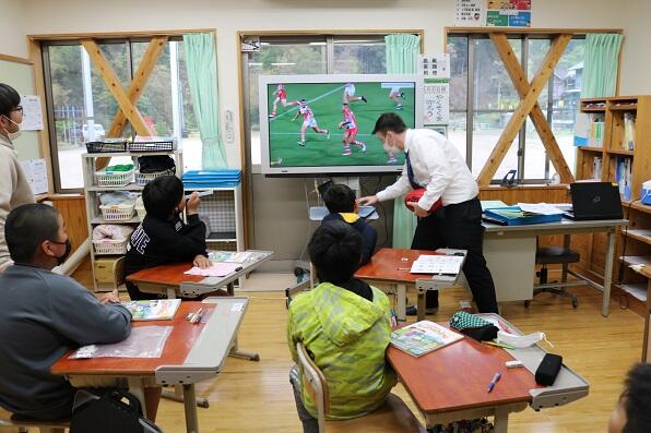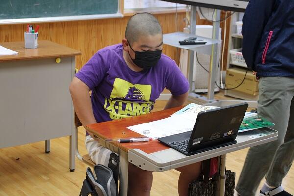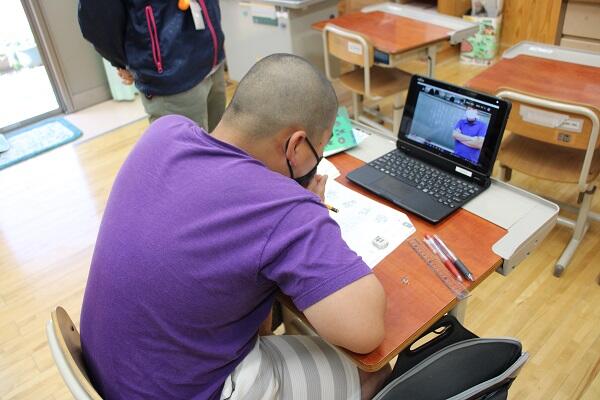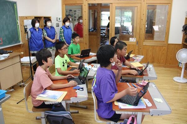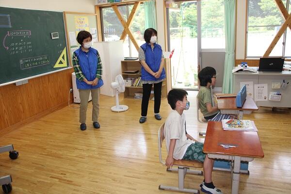 5・6年生の様子です。最初なので、5・6年生一緒に約束事の確認をしているようです。