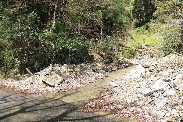 これは、昨年の台風14号で流れてきた土砂です。ほんとうは道なんですが・・・・