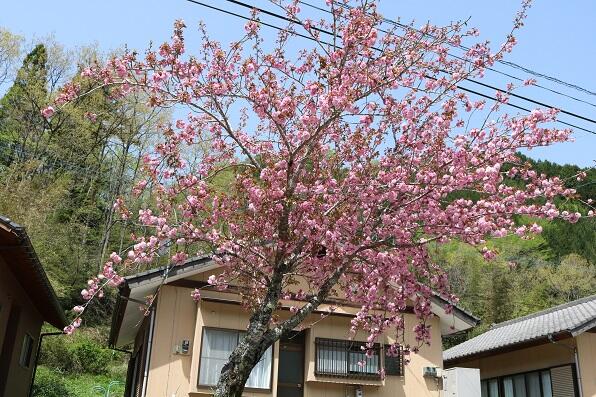 職員住宅の桜の木(八重桜)は今が満開です(^^)
