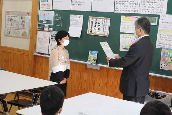 終業式後、多読賞の表彰です。2年生が多読賞です。おめでとうございます。