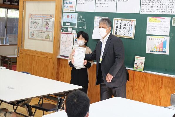 不土野小の学校運営協議会委員さんは、校長、教頭を含めて9名で構成されます。第1回目ということで、教育長と課長も来校され任命状の交付と学校運営協議会についての説明をされました。