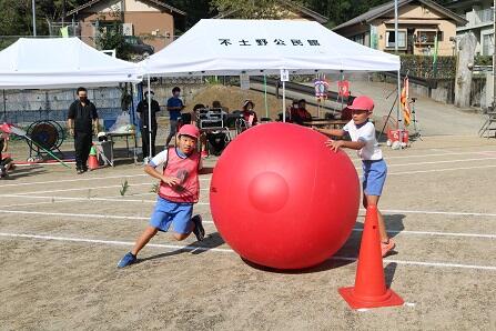 大玉転がしです。大接戦で、赤団がぎりぎり逆転勝利
