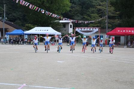 4年生はフラミンゴという高くて足が届かない一輪車にチャレンジしていました。普通の高さでも難しいのに、これはかなり高くてとても難しそうです。でも、怖がることなく練習しているのですごいですね。