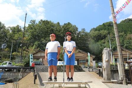 子どもたちから小咄や作文を発表したり、伝承遊びやニュースポーツ、お店などのふれあい活動を行ったり、地域のことを質問したりしています。