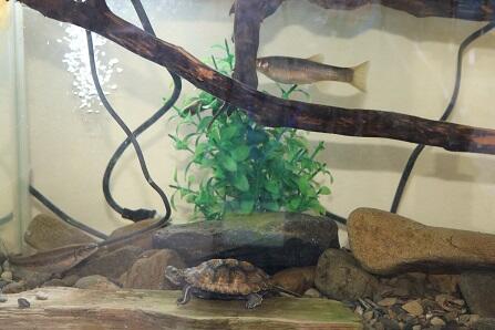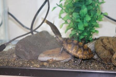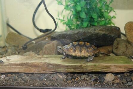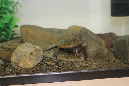 教頭先生と一緒にやってきたイシガメ(たぶん)のカメ次郎です。こちらも成長を見守っていきます。(現在40グラム)
