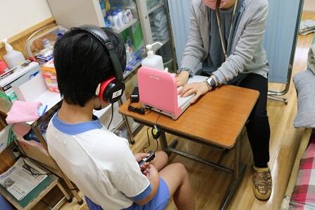 毎年、椎葉村内の小学校5校のうち4校の全児童が椎葉小学校に集まり、眼科、心電図、貧血検査、生活習慣病予防検診を行います。今日がその日でした。