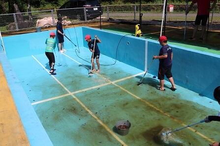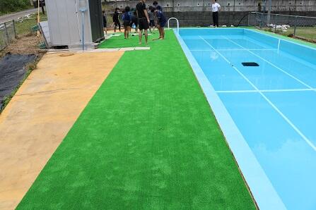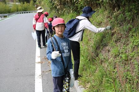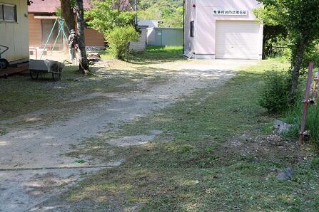ゴールデンウイーク3日目にまた草刈りをしました。今回は、職員住宅下の道路脇と校庭の一部の草を刈り取りました。